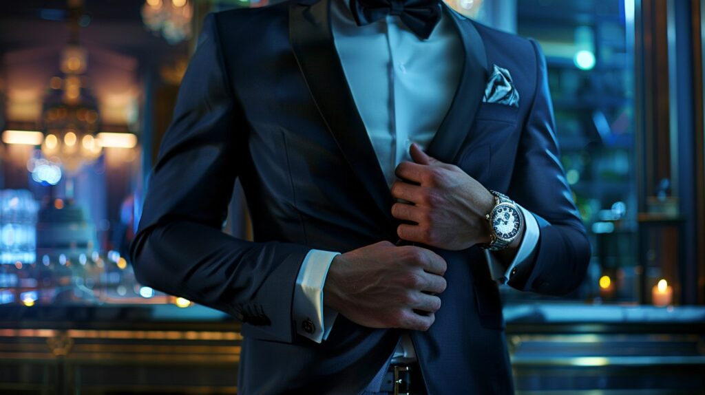 Accessories refine your outfit without overdoing it. A tie, bow tie, pocket square, and sleek watch add polish. Keep belts and other accessories simple, coordinated, and minimal.